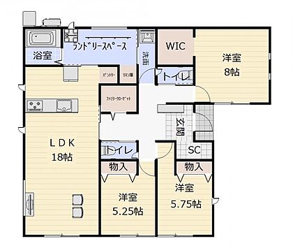 (2区画参考プラン)3LDK+ランドリールーム+FC+WIC+SC+パントリー+リネン庫!建物価格2,200万円(税込)□建物面積/101.02平米(30.55坪)
