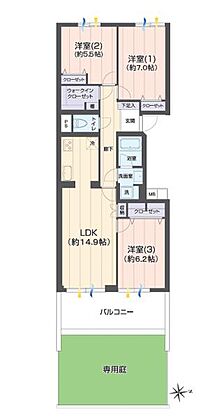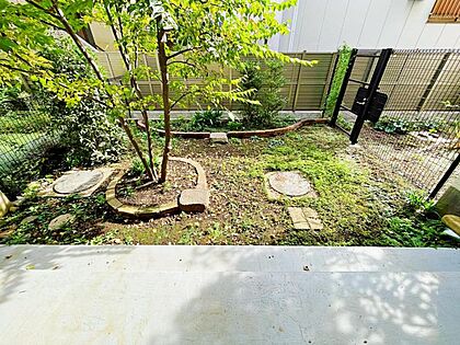 東向けのバルコニー・専用庭。採光・通風良好です。