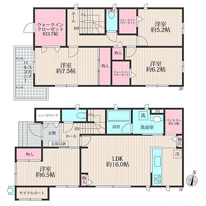4LDK 2階は全室WICがございます。サイクルスペースやパントリー等あったらいいなを詰め込みました。