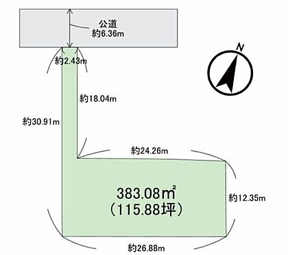 | 土地面積/坪(坪単価) | 382.60m2(登記簿)/115.94坪(94.90万円) | 代表的な接道 | 一方 公道 北 6.3m ※詳細は備考欄をご確認ください |