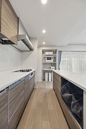※販売対象に家具・調度品は含まれません。アイランドカウンターが設置されたキッチン。ご家族と会話しながら作業ができます。