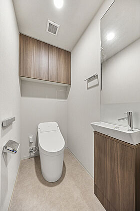 トイレ内には、カウンター付き手洗いボウルが備え付けられています。使用後すぐに手を洗え、衛生的です。【トイレ】