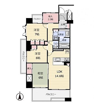 広々とした南面バルコニー。屋根のあるインナーバルコニーは急な雨でも安心です!