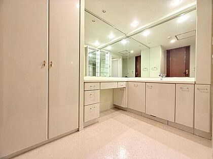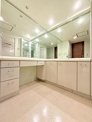ホテルのようなワイド設計の洗面台!収納スペースも豊富で使い勝手が良く、親子・夫婦で並んで身支度も〇