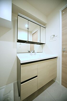 三面鏡のシャンプードレッサーで、お出かけ前の身支度もスムーズに♪
