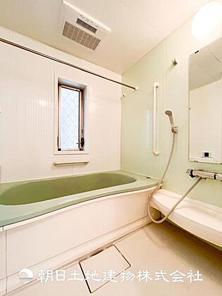 【浴室】上品な色合いが魅力のバスルームは、ほっと落ち着く空間を作り出しています。広々とした浴槽で体を癒やしながら、疲れを取り除けるような仕様です。お子様と一緒に楽しく入るのもいいですね。