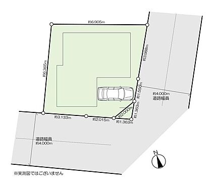 土地面積/坪(坪単価) 51.36m2(実測)/15.56坪(223.70万円) 代表的な接道 一方 公道 南 3.7m、西 4m