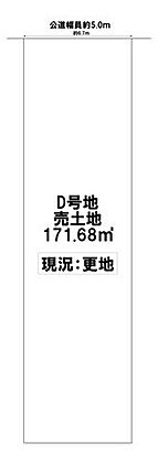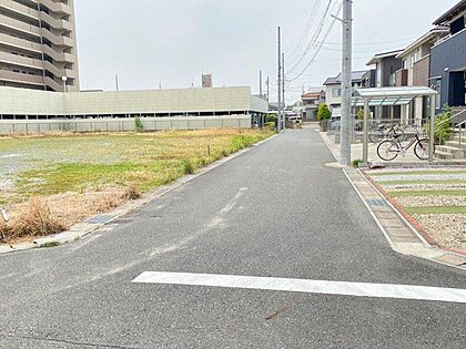 北側(公道)幅 約5.0m 間口 約6.7mあります。周辺道路はきれいに舗装されています。