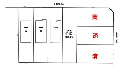 A号棟側から区画全体を撮影しています。スーパーやコンビニ近くお買い物に便利です♪人気の整形地です!建築プランが立てやすいですね!