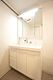 シャワー付き洗面台になります♪3面鏡になっており、鏡裏に収納がございます♪
