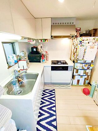 L字型キッチンは、調理や片付けの動線を効率的にし、家事の時間を短縮します。リビング・ダイニングと程よくつながるレイアウトで、家族の会話を楽しみながら料理ができる設計です。