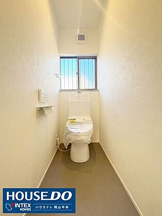 小さな窓から自然の光と風が入る、明るく清潔感のあるトイレです。換気もバッチリで、いつも気持ちよく使えるのが嬉しいですね。シンプルなデザインなので、インテリアで個性を出すのも楽しいですよ!
