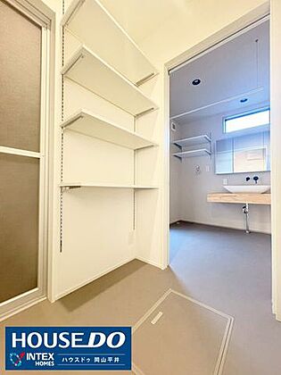 タオルや洗剤のストックも一目でわかるオープン棚!家族みんなのものを整理整頓しやすく、家事の時短にも繋がります!