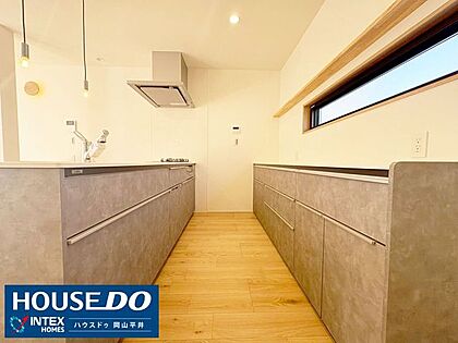 リビングを見渡せる開放的な対面キッチン!スタイリッシュなデザインで、お料理のモチベーションもアップしそうですね。食洗機や充実の収納で、家事効率もグッと上がりますよ!