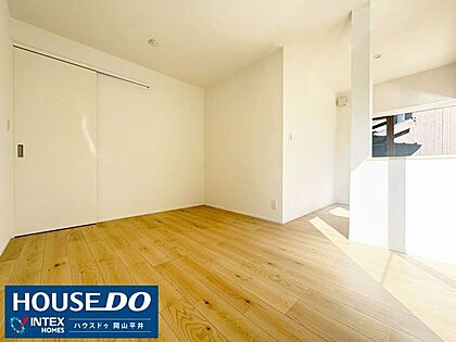 陽光がたっぷり差し込む明るいお部屋は、家族みんなが自然と集まるくつろぎの空間。あたたかい木のぬくもりを感じるフローリングで、お子様も元気に遊べますね!