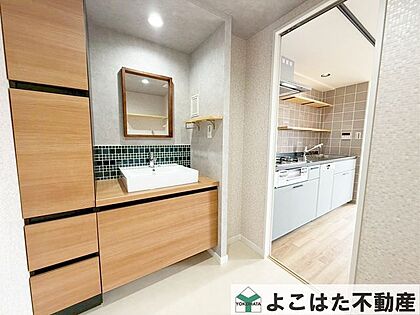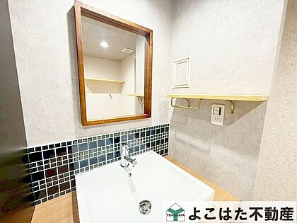 アクセントのモザイクタイルがおしゃれなパウダールーム♪