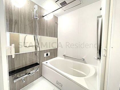 落ち着いた色合いでゆったりくつろげるユニットバスです、浴室乾燥機付きなので雨の日のお洗濯も安心です
