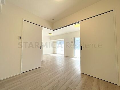 リビング隣の約4.6帖洋室は、引き戸を開けてリビングの一部として使ったりしても◎