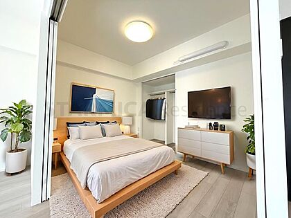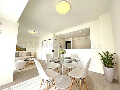 ホームパーティーにもぴったりな、明るい約17.2帖のLDK※家具・小物はCGによるインテリアイメージであり、家具の設置サイズを保証するものではございません。※家具配置はTV配線には配慮しておりません
