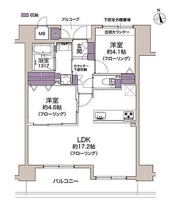 南向きで明るく、あたたかい陽射しがさんさんと降り注ぐ約17.2帖のLDK