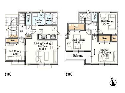 •  プラン例:B区画 4LDK 建物面積:90.15平米 建物価格1420万円