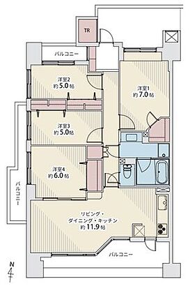 南西角部屋×3面バルコニーと、開放感溢れる4LDK。4階南向きにつき、陽当り通風眺望良好です。
