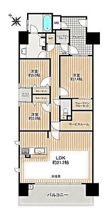 間取り 3SLDK 専有面積 95.56m2(壁芯)