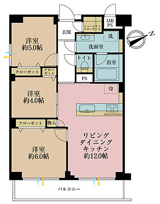 3LDK、専有面積59.7?、バルコニー面積6.72?