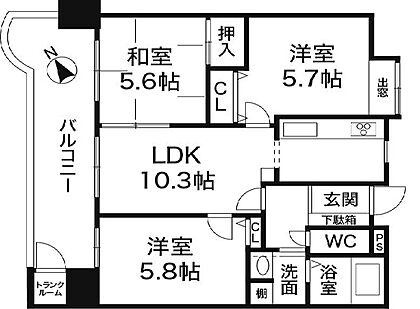 | 間取り | 2SLDK | 専有面積 | 57.60m2(壁芯) |