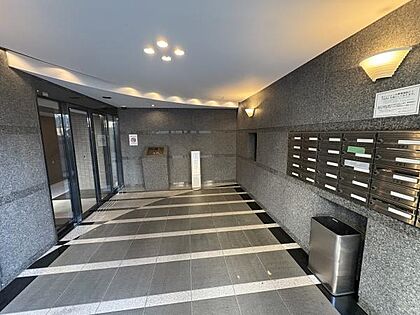 外壁タイル貼りで重厚感あるエントランス。植栽が綺麗に手入れされ、清掃・管理が行き届いています。オートロック付で安心!