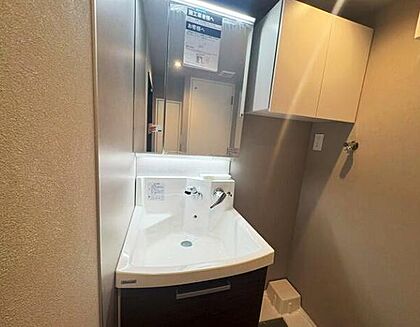 使い勝手の良いシャワー付洗面台。収納があり、洗面まわりを綺麗に使用できます!水まわりが集中している事によって移動距離が短くなるので家事効率がUP!