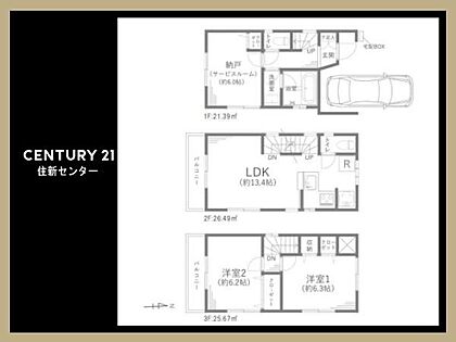土地面積73.55平米、建物面積54.84平米 建ぺい率50% 容積率150% 2SLDK・全居室収納有 カースペース1台有!