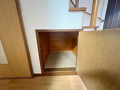 •  階段の下の空間も無駄にしない一工夫、ここにも小さな収納があります。