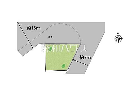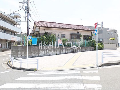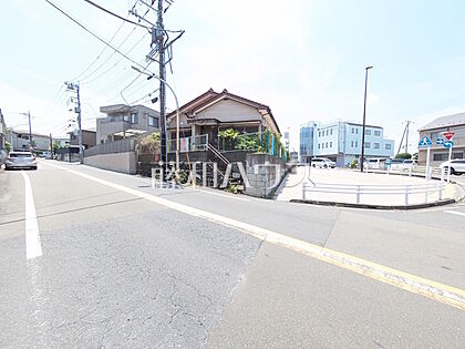 現地写真(古屋あり) 【日野市南平3丁目】 角地 北16m×東7mと広いですが、しっかりと歩道がありますので歩行者も安心して通れます。