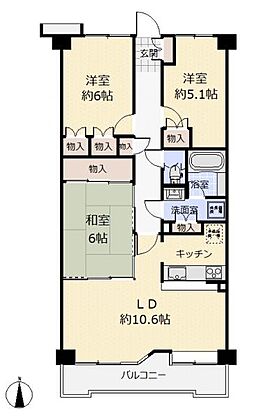 (間取)南向きで明るいLDK*収納スペースも豊富でお部屋がすっきり片付きます!
