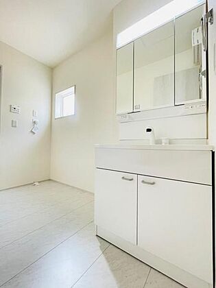 朝の忙しい身支度も広々使える洗面化粧台。(同仕様)