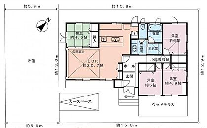 洋室前のウッドテラスでティータイムも楽しめます