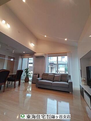 勾配天井で開放感あるリビングスペース