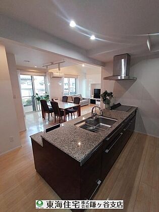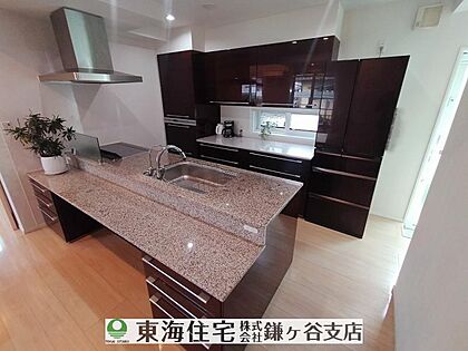 オープン対面キッチンで会話を楽しみながらお料理 キッチンカウンターは大理石です