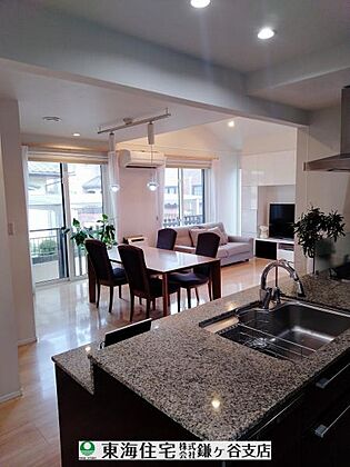 キッチンからリビングを見渡せてます。 小さなお子様もママの顔が見えて安心です