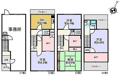 ◆アクセス良好♪2沿線3駅利用可能◆4階建て・4DK+事務所