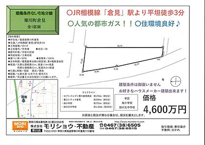 寒川町倉見より物件をご紹介させて頂きます。 ・倉見駅より徒歩3分 駅から近いです。 ・都市ガス ・建築条件なし お好きなハウスメーカーで建築出来ます。 建物プラン承ります。 ★是非ご覧下さいませ お問合せをお待ちしております。  |