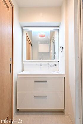 大きな鏡と洗面台が付いた洗面化粧台は収納も豊富!買い置きした日用品などまとめて収納する事が出来ます!