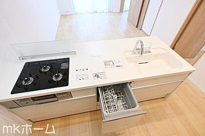 食洗機付きのシステムキッチンは収納も豊富!散らかりがちなキッチンも大容量の収納でスッキリ片付きます!