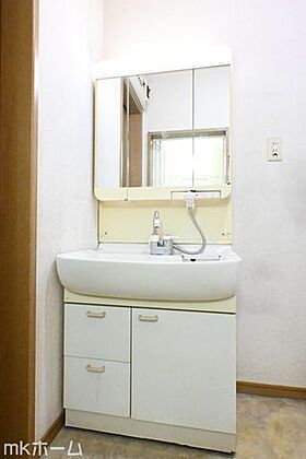 大きな鏡と洗面台が付いた洗面化粧台は収納も豊富!買い置きした日用品などまとめて収納する事が出来ます!