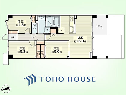 3LDK 専有面積71.60平米、テラス面積5.22平米、プライベートガーデン6.86平米、オープンエアリビング面積11.52平米