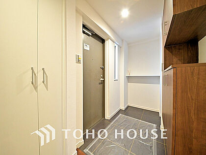落ち着いた雰囲気の玄関、家族の帰りを暖かく迎えてくれます