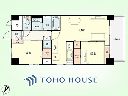 2LDK 専有面積45.12平米、バルコニー面積5.59平米