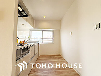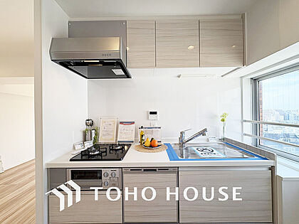 シンプルな部屋の雰囲気に溶け合うナチュラルキッチン