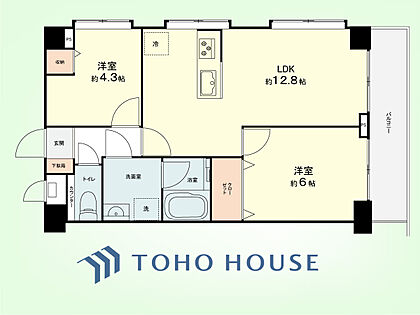 2LDK 専有面積51.15平米、バルコニー面積5.05平米